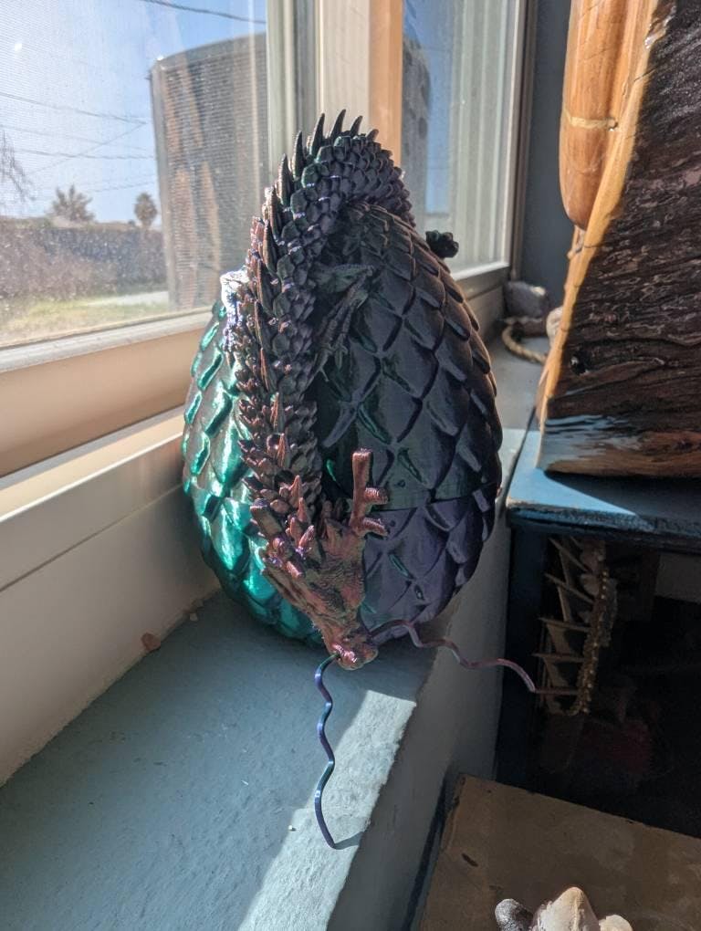 3D Printed Articulated Chinese Dragon and Egg: Fantasy Decor, Bookshelf and desk decoration